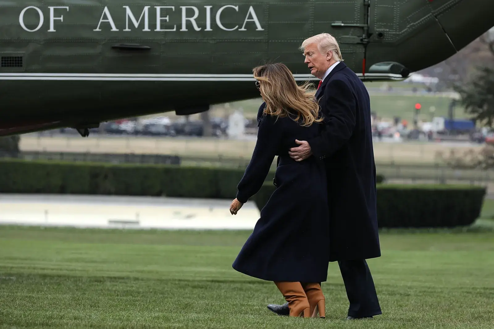 holding Trump’s hand during landings.